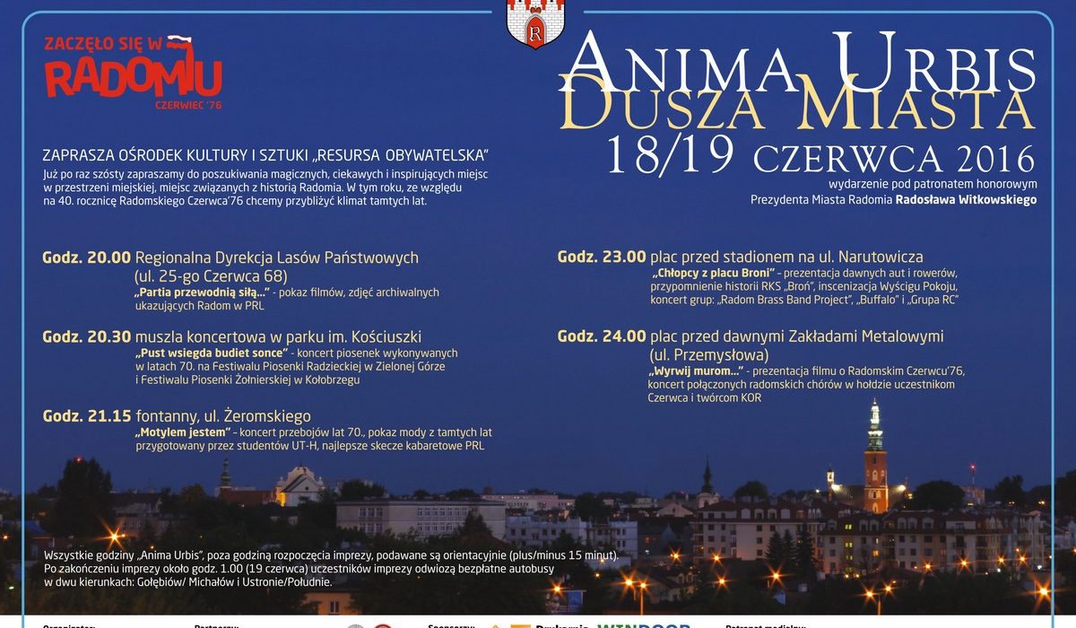 Ośrodek Kultury i Sztuki Resursa Obywatelska organizuje tą wyjątkową imprezę już po raz szósty. W tym roku przybliżony zostanie klimat z okresu Wydarzeń Czerwcowych. Co ciekawe, około godz. 23 uczestnicy wędrówki po Radomiu dotrą na plac przed stadionem przy ul. Narutowicza. Zorganizowany tu zostanie przystanek zatytułowany „Chłopcy z placu Broni”. Zaprezentowane zostaną auta i rowery z czasów PRL, przypomniana zostanie historii RKS „Broń”, a na koniec, będzie można obejrzeć inscenizację Wyścigu Pokoju.