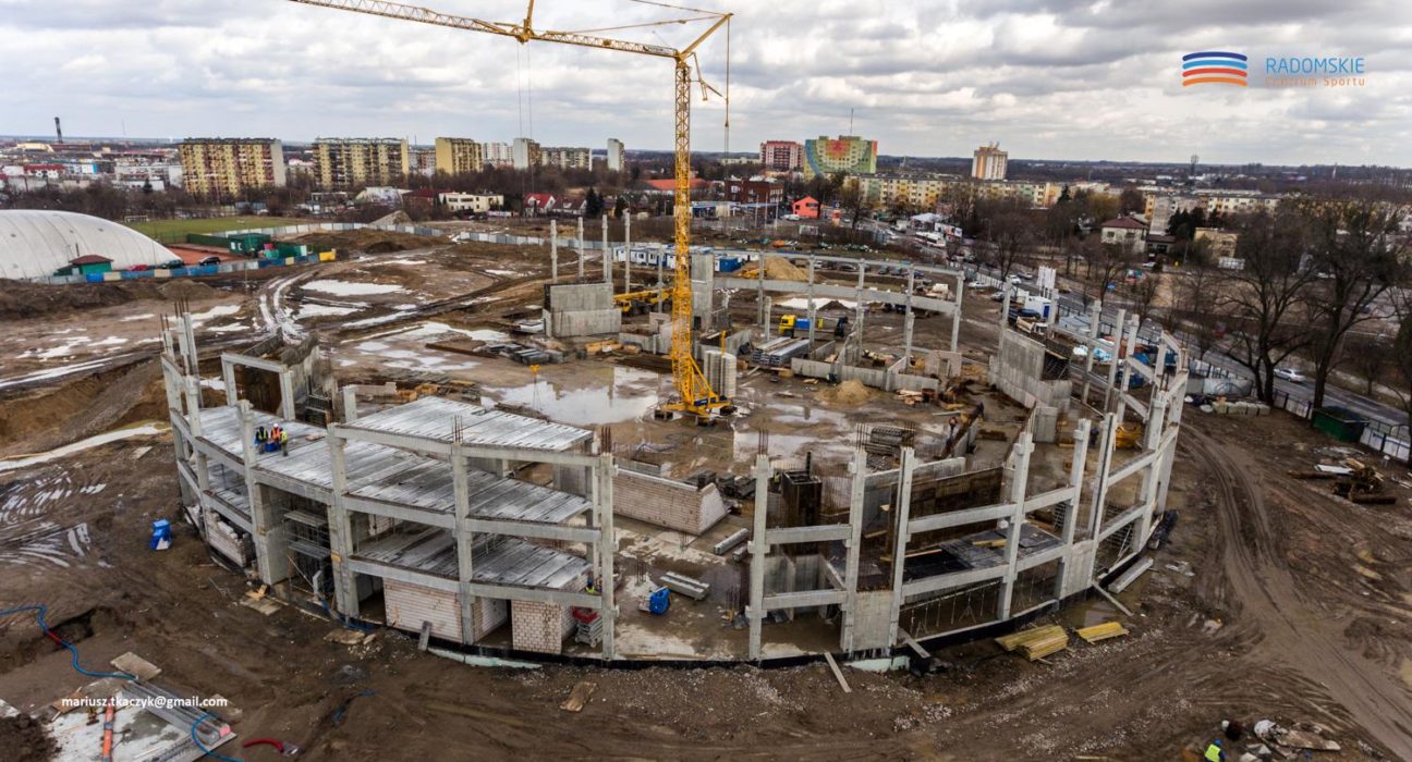 O zimowej aurze na placu budowy Radomskiego Centrum Sportu już zdążyliśmy zapomnieć. Szczególnego wymiaru nabierają prace przy łączniku pomiędzy halą a nowym stadionem