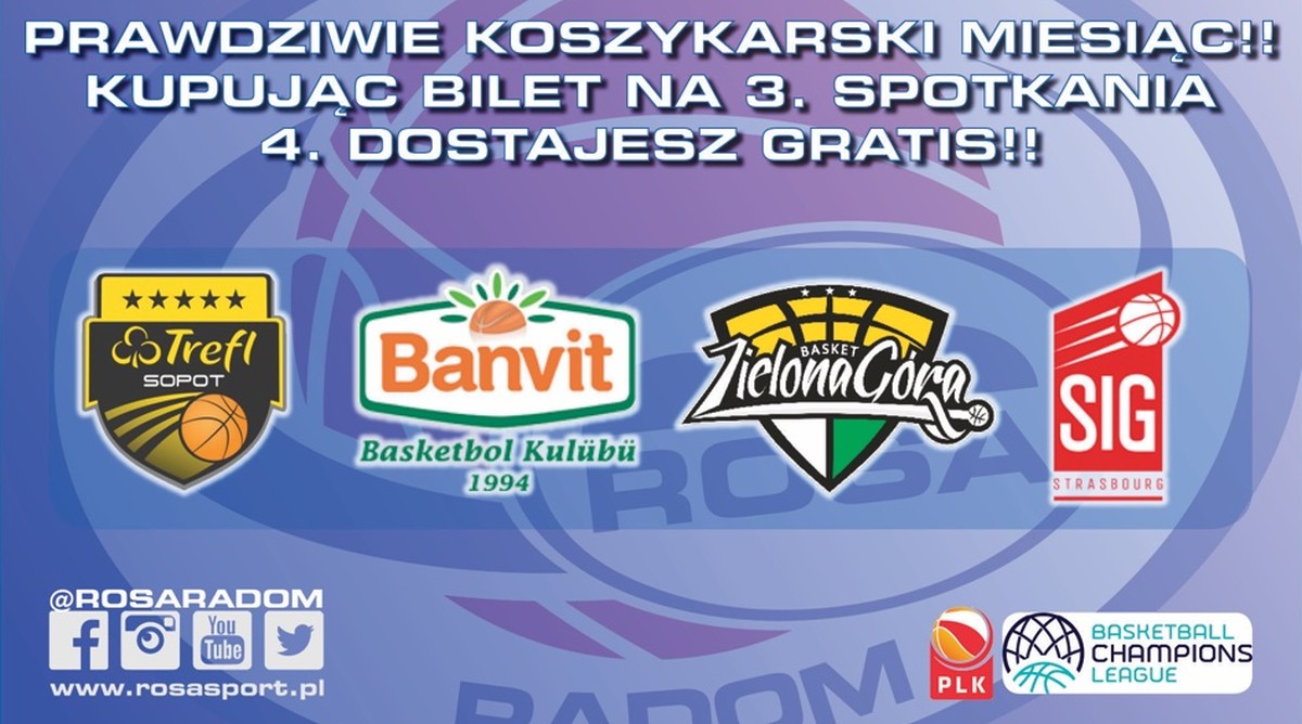 Przypominamy, że kto kupił bilet wstępu na mecze z Treflem, Banvitem i Stelmetem, na mecz z SIG Strasbourg może wejść zupełnie za darmo. Wystarczy, że okaże w kasie hali MOSiR trzy bilety ze wspomnianych spotkań, wejściówkę na mecz z francuskim zespołem, również w kasie, otrzyma bezpłatnie!