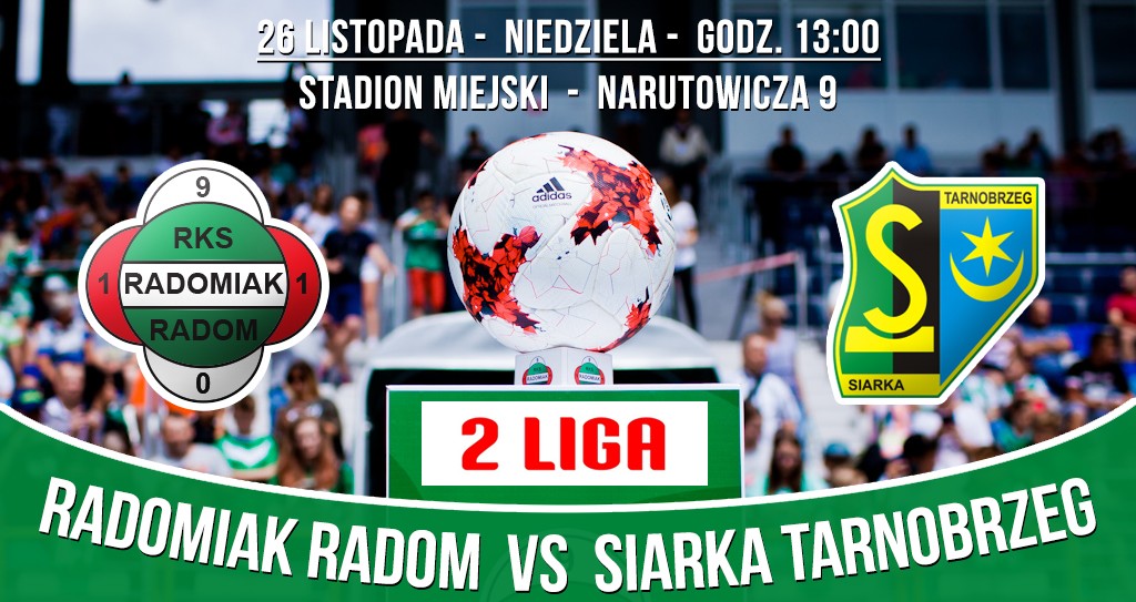 Sprzedaż biletów na mecz Radomiak – Siarka Tarnobrzeg (26 listopada, niedziela – godz. 13:00):