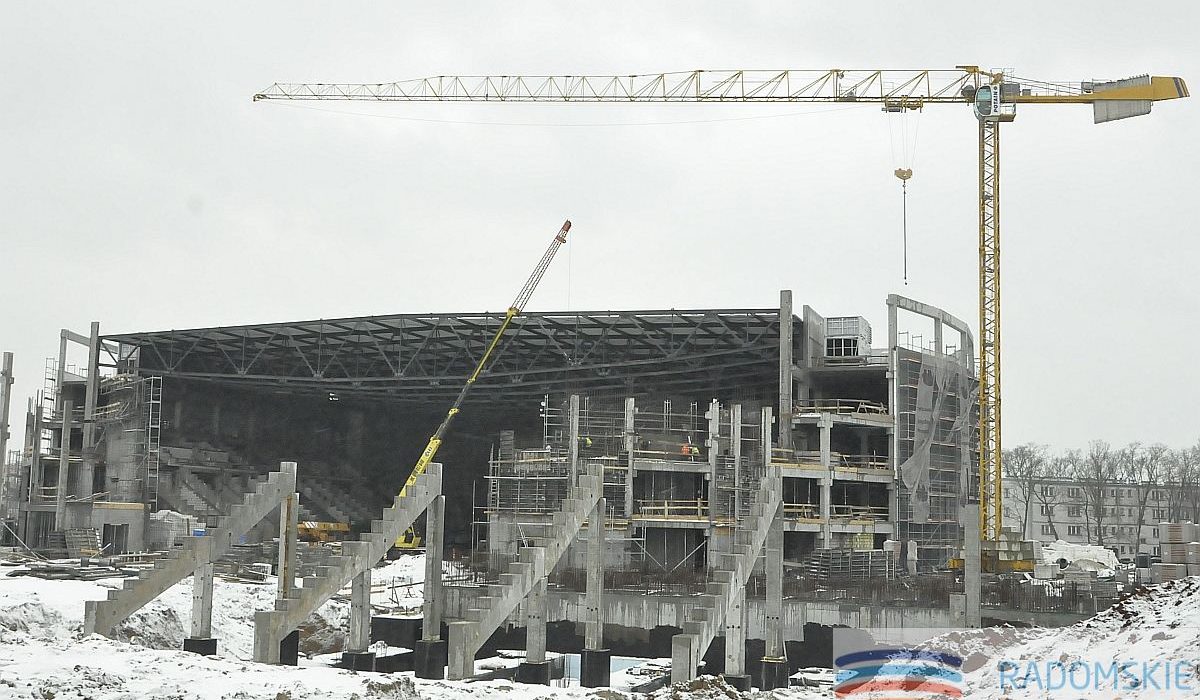 Głównemu Wykonawcy pozostały do zamontowania także ostatnie słupy i belki w hali sportowo-widowiskowej. Trwa usztywnianie konstrukcji dachu, która pojawiła się na hali. – Oprócz tego prowadzone jest wiele innych działań, jak szalowanie, zbrojenie i betonowanie stropów, wylewki w piwnicach, roboty spawalnicze poszczególnych instalacji, montaż kanałów wentylacyjnych czy schodów prefabrykowanych – wylicza prezes MOSiR-u.
