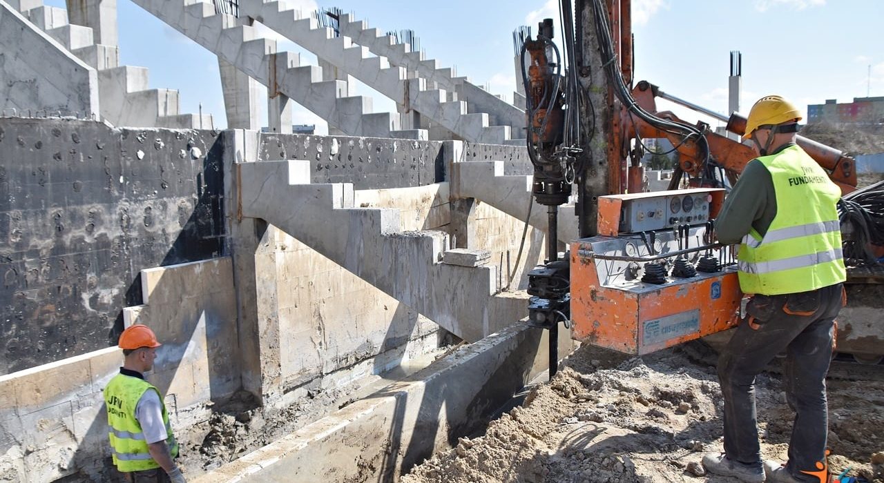 Na budowie stadionu piłkarskiego powstającego w ramach Radomskiego Centrum Sportu trwają prace przy wzmacnianiu podłoża pod trybuną północną (na zdjęciu).