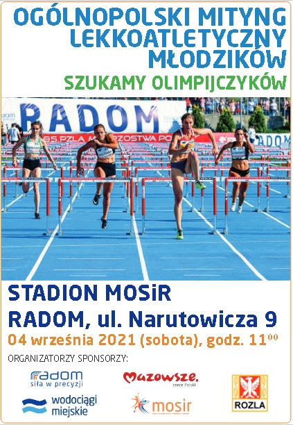 Radomski Okręgowy Związek Lekkiej Atletyki zaprasza na ogólnopolski mityng młodzików pod hasłem „Szukamy Olimpijczyków”. Odbędzie się on 4 września 2021 roku na naszym stadionie. Początek zawodów zaplanowano na godz. 11.