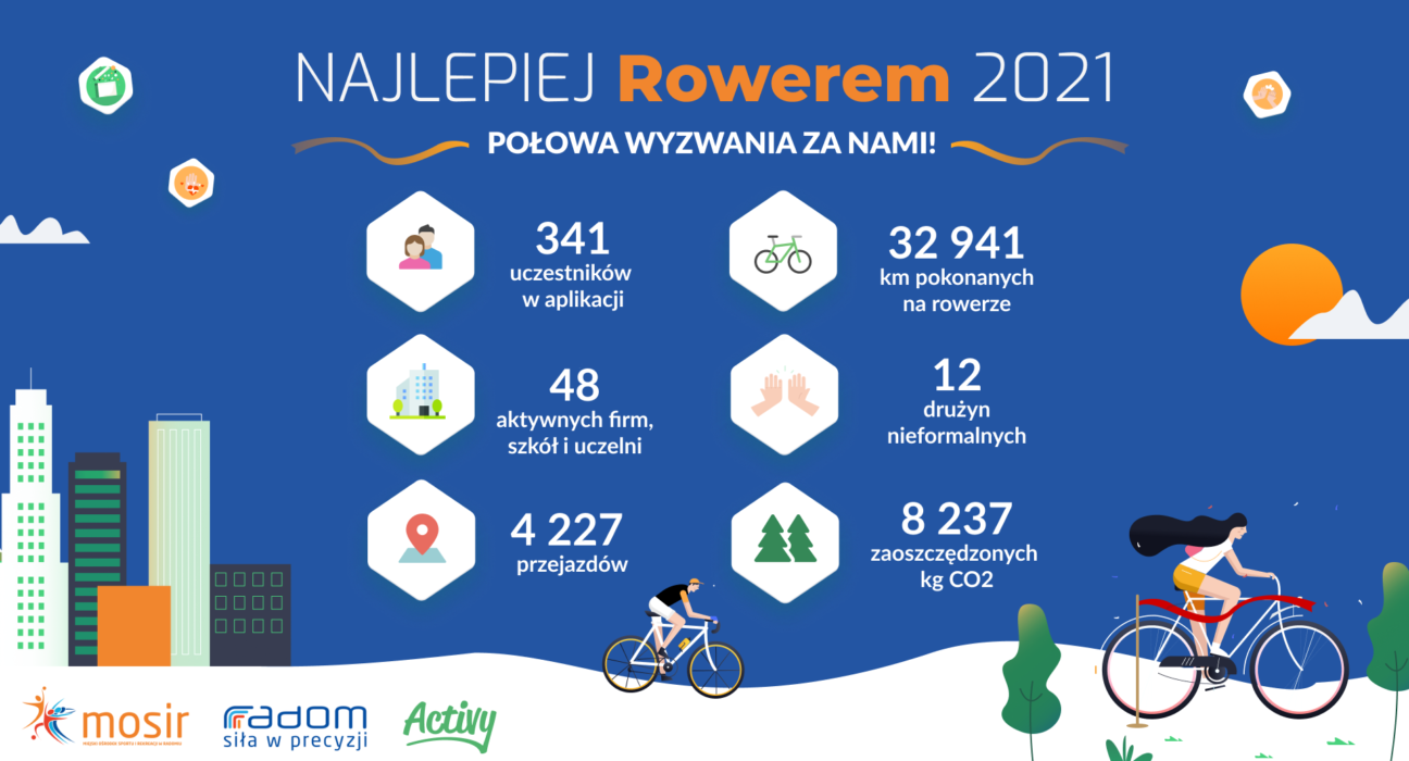 Najbardziej aktywną dzielnicą jest obecnie Halinów przed Śródmieściem i Michałowem. Najbardziej aktywną szkołą natomiast Zespół Szkół Budowlanych przed VI Liceum Ogólnokształcące i Zespołem Szkół Technicznych. Wspólnie zaoszczędziliśmy ponad 8 ton dwutlenku węgla, z czego aż 1,7 tony to CO2 zaoszczędzone dzięki aktywnej drodze do/z pracy, w porównaniu do przemieszczania się samochodem. 8 ton mniej CO2 odpowiada „pracy” ponad 1000 drzew w ciągu roku – to prawie 0,5 hektara lasu.