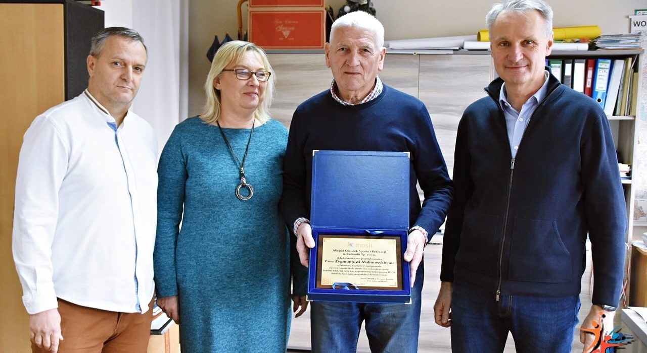Zygmunt Malinowski, były prezes Radomskiego Okręgowego Związku Lekkiej Atletyki, otrzymał od władz MOSiR-u pamiątkowy grawer w podziękowaniu za wieloletnią współpracę spółki i ROZLA oraz za zaangażowanie na rzecz rozwoju radomskiej lekkiej atletyki i sportu.