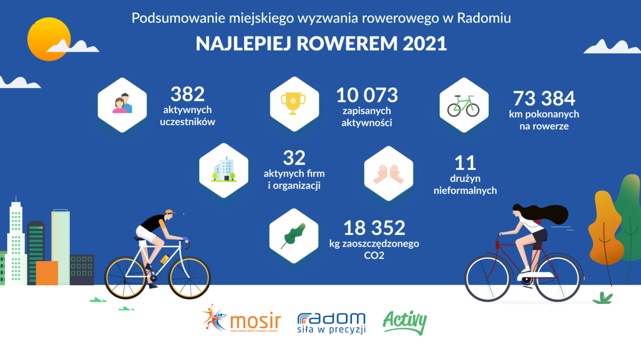 Projekt powstał w ramach Budżetu Obywatelskiego 2021. Od 14. września przez dwa miesiące gra miejska mobilizowała mieszkańców Radomia do jazdy rowerem, którzy za pokonane kilometry otrzymywali stosowną liczbę punktów. Do gry włączyło się ponad 380 aktywnych uczestników, którzy stworzyli m.in. drużyny szkolne i firmowe. W wyzwanie zaangażowało się także kilkanaście grup nieformalnych. W sumie zrealizowali ponad 10 tysięcy aktywności. – Uczestnicy wyzwania pokonali dystans 73 tysięcy kilometrów – to tak, jakby okrążyć Ziemię wzdłuż równika prawie dwa razy. Co więcej, w ten sposób zaoszczędzili ponad 18 tys. kg CO2, co odpowiada pracy prawie 2,3 tys. drzew w ciągu roku.