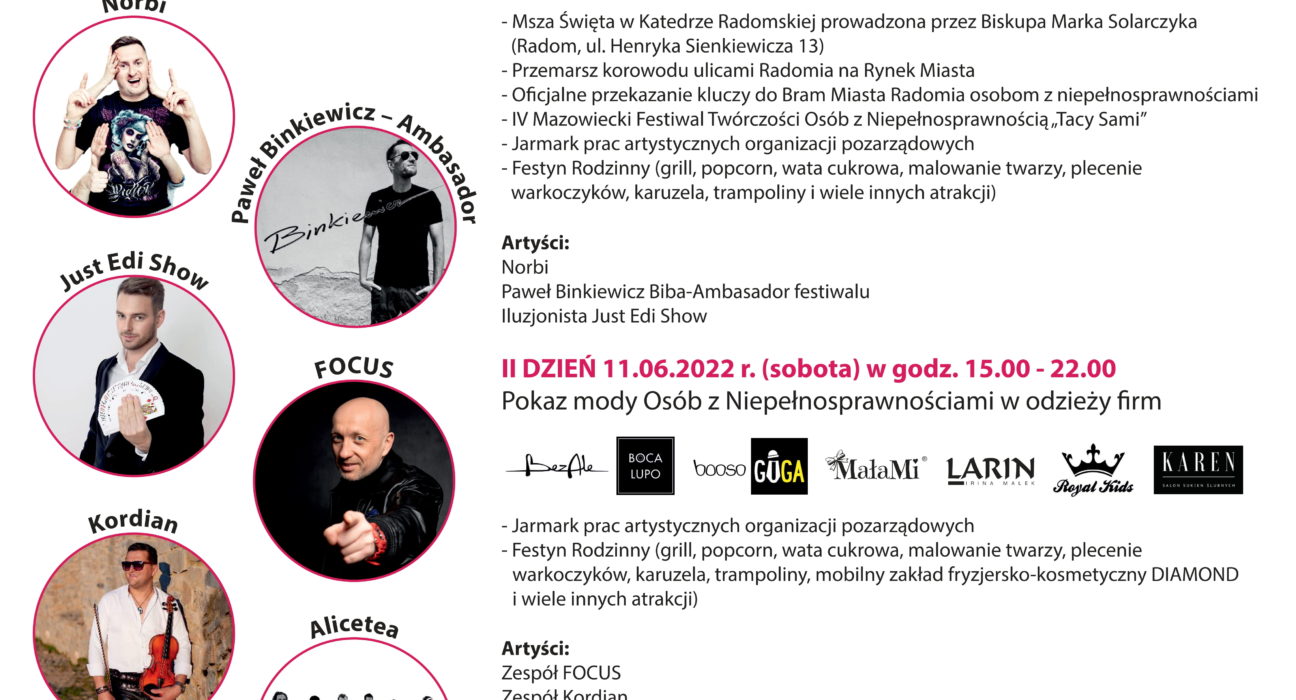 IV Mazowiecki Festiwal Twórczości Osób z Niepełnosprawnością „Tacy Sami”;