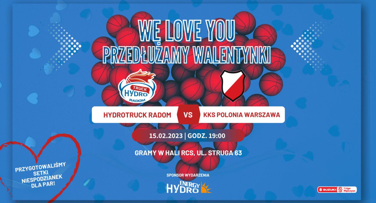 W 25. kolejce Suzuki 1. Ligi koszykarze HydroTrucku Radom zmierzą się w hali Radomskiego Centrum Sportu z KKS Polonią Warszawa. Organizatorzy przygotowali dla par mnóstwo walentynkowych atrakcji.